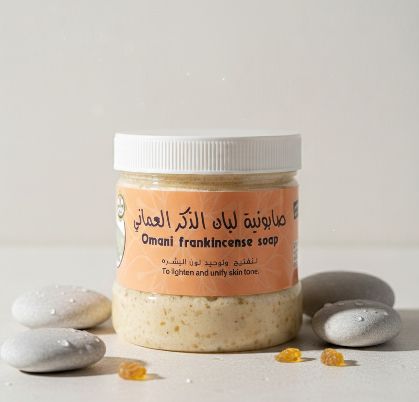 دلّلي بشرتك بصابونية لبان الذكر العُماني – تركيبة طبيعية تنظّف بعمق، توحّد لون البشرة، وتقلّل التجاعيد بفضل الكولاجين الطبيعي ومضادات الأكسدة.